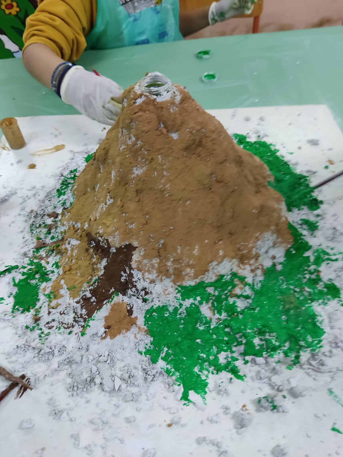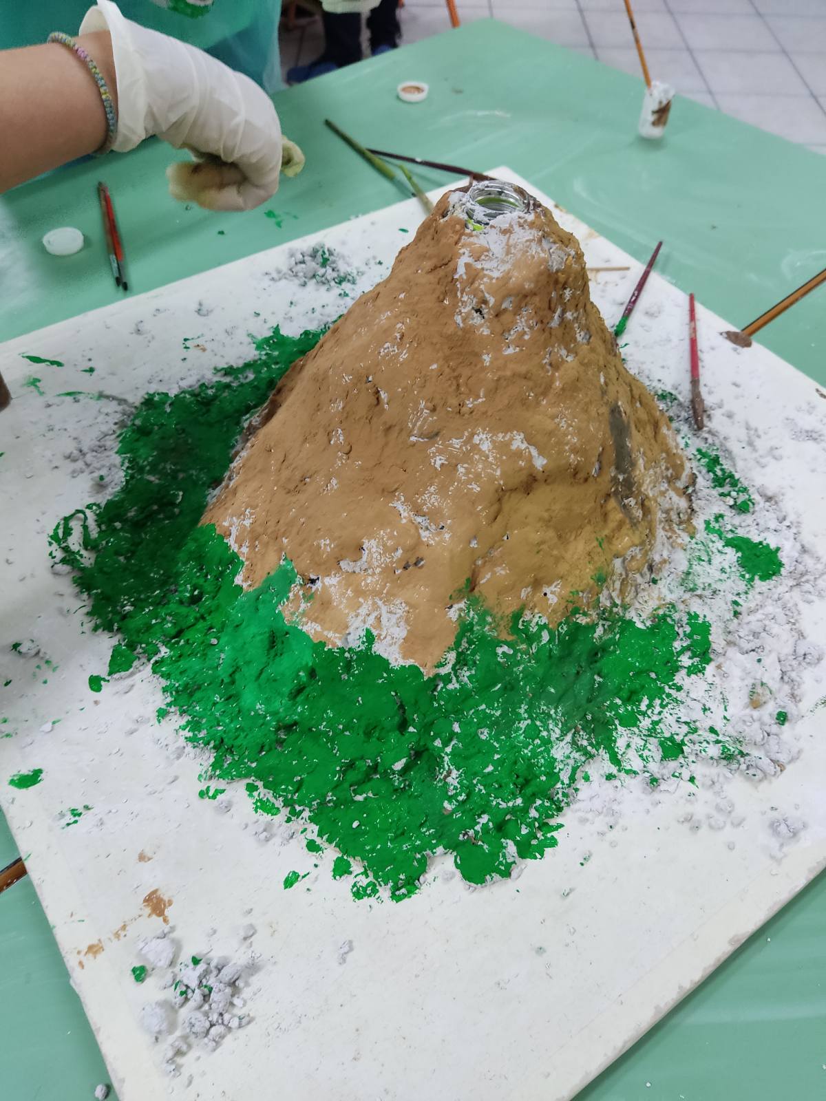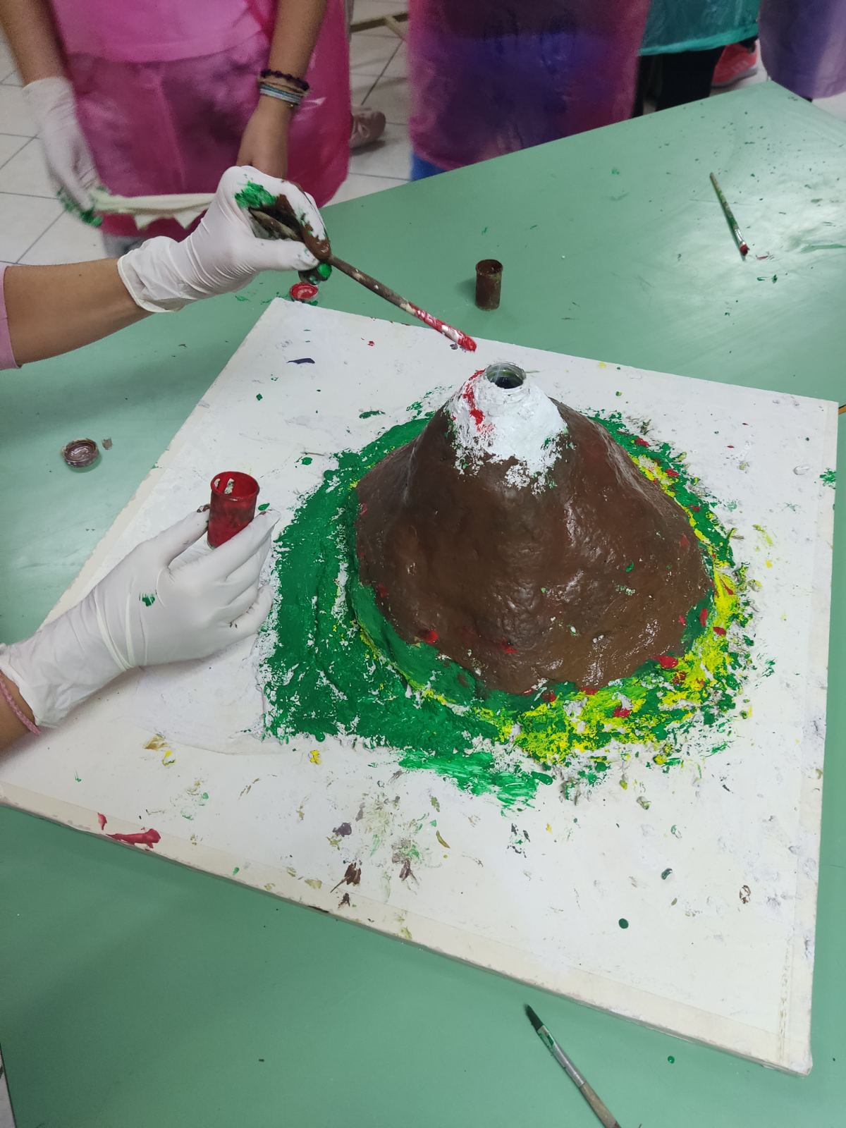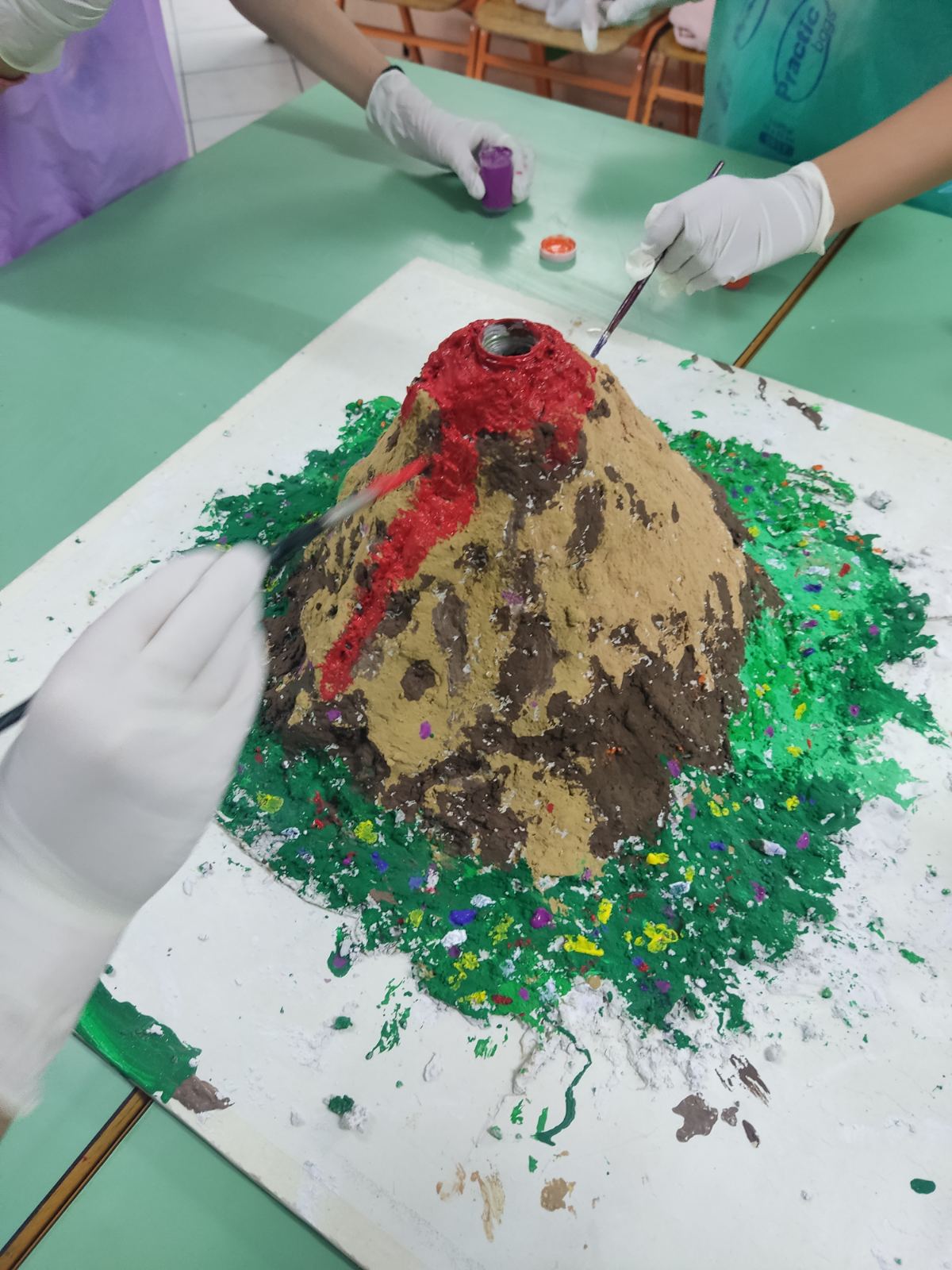 Οι μαθητές του Ε1 του σχολείου μας δημιούργησαν, υπό την εποπτεία του εκπαιδευτικού Σισμάνη Θεολόγου, ανάγλυφη μακέτα που αναπαριστά ηφαίστειο. Η κατασκευή θα αποτελέσει εποπτικό υλικό ώστε να χρησιμεύσει στην προσομοίωση έκρηξης ηφαιστείου και τη ροή της λάβας του.